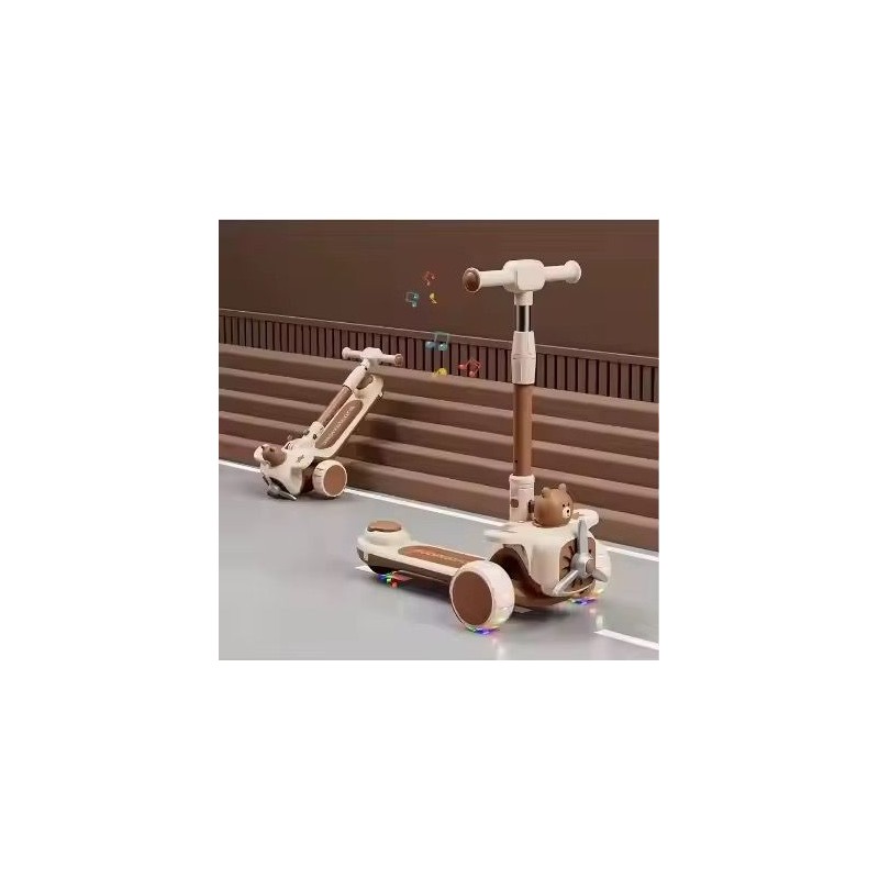 Cette trottinette évolutive 3-en-1 pour enfants, coloris beige et marron, accompagne la croissance des tout-petits en passant du porteur au modèle classique. Dotée de roues LED, de fonctions musicales, d’un guidon réglable et d’un système à trois roues pour une stabilité optimale, elle convient aux enfants de 3 à 8 ans.