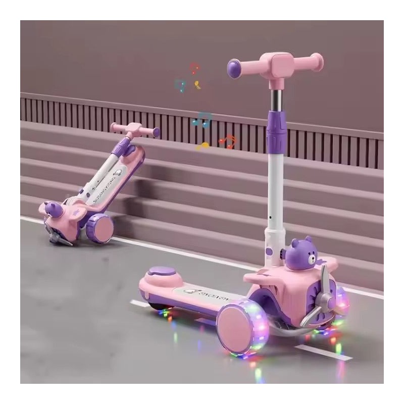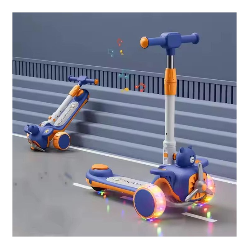 Ses roues LED multicolores, qui s’illuminent à chaque mouvement, ajoutent un effet ludique tout en améliorant la visibilité lors des sorties. Pour encore plus de plaisir, la trottinette intègre des fonctions musicales qui stimulent et divertissent l’enfant pendant ses déplacements.