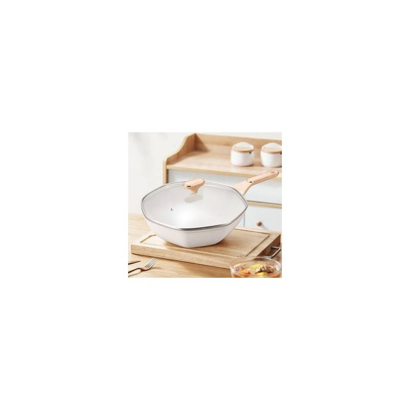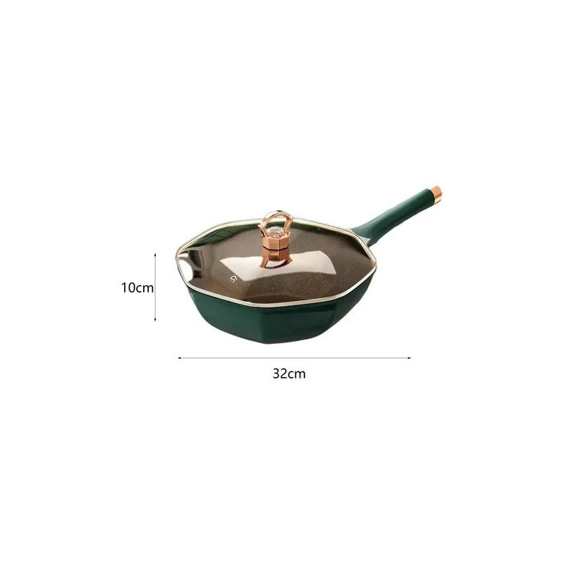 Poêle wok octogonal 32 cm en pierre médicale – idéale pour cuisiner pour toute la famille.