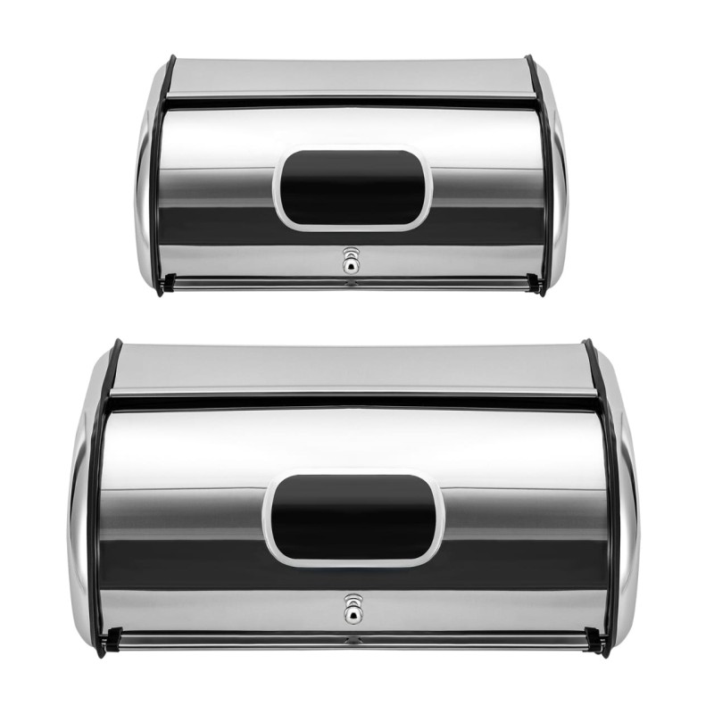 Conservez vos pains et pâtisseries toujours frais avec cet ensemble de 2 boîtes à pain en acier inoxydable. Élégantes et pratiques, elles sont équipées d’un couvercle coulissant, d’une fenêtre transparente et d’une base antidérapante pour un usage quotidien optimal. Leur grande capacité permet de ranger plusieurs pains ou viennoiseries tout en gardant votre plan de travail propre et organisé.