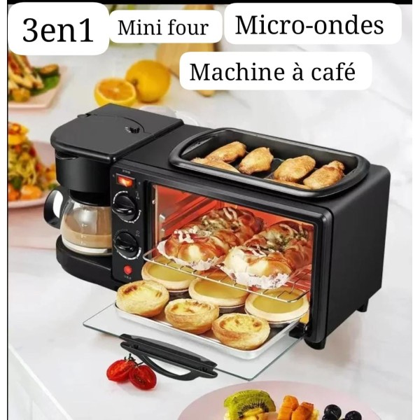 cette station de petit-déjeuner se compose d'un four électrique, d'une machine à café et d'un plateau à frire. Avec cet appareil, vous pouvez préparer des toasts, des œufs, du bacon, etc. Préparer votre petit-déjeuner idéal n'a jamais été aussi simple !