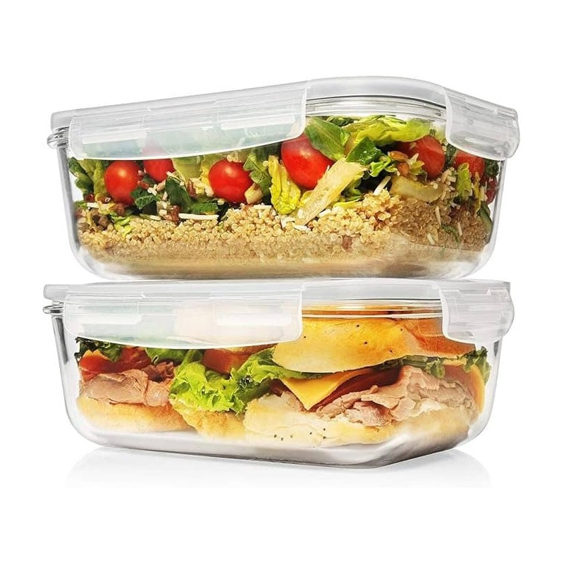 Boîte Repas en Verre Grande Capacité – Couvercle Silicone Étanche – Passe au Four et Congélateur